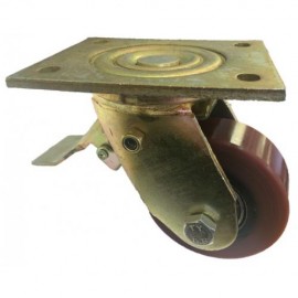 125mm Swivel Polyurethane Castor (Braked) - Max 140Kg This 125mm Red Polyurethane Castor with Wheel Brake offers excellent aesthetic appreance combined with the Ultimate Castor material. The Polyurethane wheel offers extreme high wear resistance, excellent levels of grip, resistance to many industrial and commercial fluids and high load bearing..