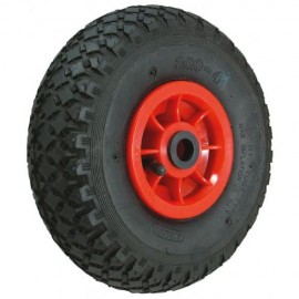 400mm Diameter Black Pneumatic Wheel Black Pneumatic Tyre 4 Ply Diamond Thread for Increased wear resistance and high grip Strong Red Polypropylene Centre Rim  Long Lasting  Super Fast delivery from Stock   400mm Tyre Diameter x 100mm Width Max Load 200Kg (at Speed 4KPH) 25.4mm Bor..
